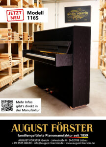 Dieses neue Pianomodell AUGUST FÖRSTER 116 S besitzt ein neu entwickeltes Gehäuse, dessen Gehäusestruktur ein modernes, zeitloses Design ergeben und eine effizientere Fertigung ermöglicht.