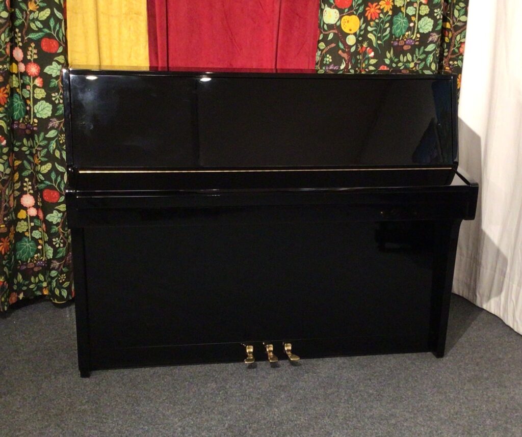 Äußere Werte: H 112 cm B 146 cm T 52 cm schwarz poliert mit Gebrauchsspuren, durchgehendes Notenpult mit Moderator Pedal zum Leise Spielen