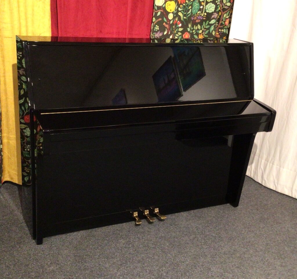 beliebtes deutsches Markenklavier in schwarz poliert; sein schöner warmer Klang bringt jedes Musikstück sofort zum Klingen …