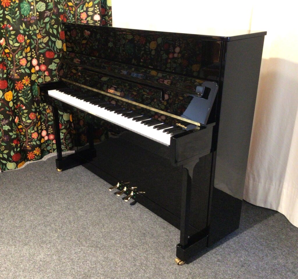Dieses junge W. Hoffmann Klavier hat einen schönen klangfarbenreichen Ton. Es ist solide verarbeitet. Die Spielart ist Dank Renner Mechanik leicht und flüssig.